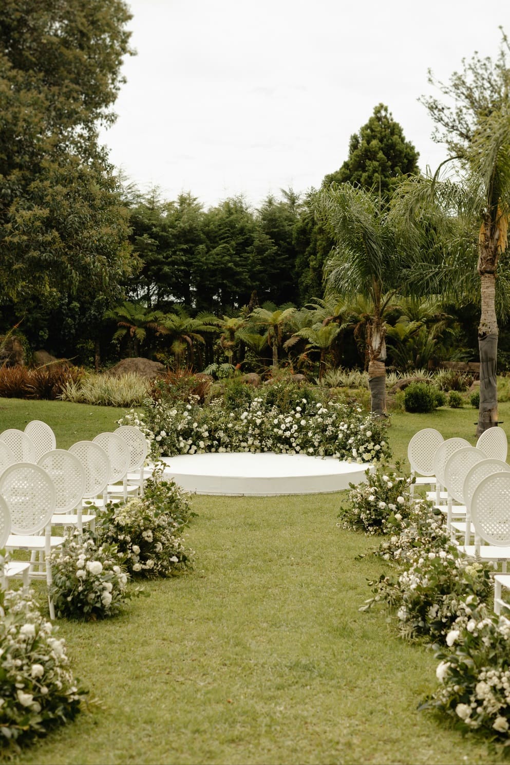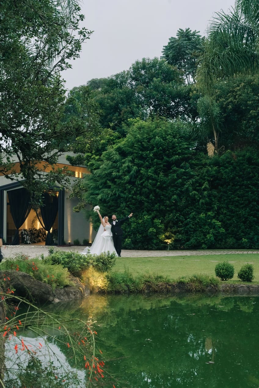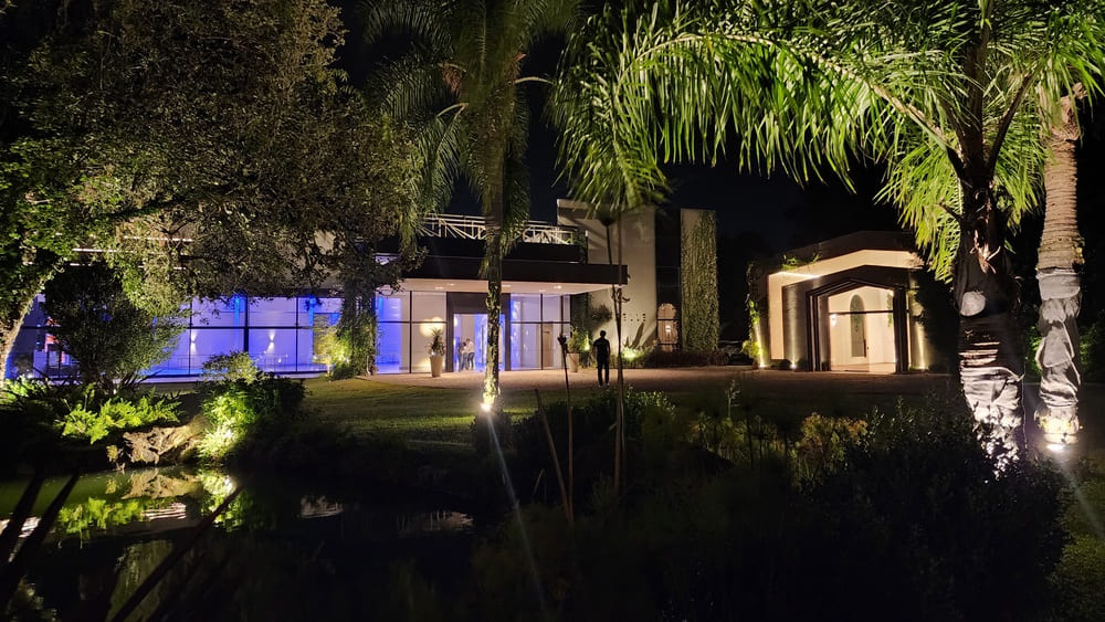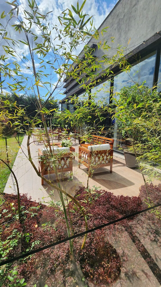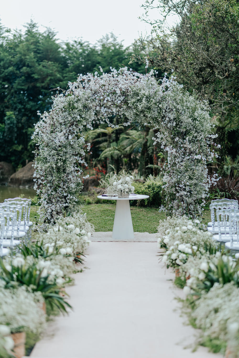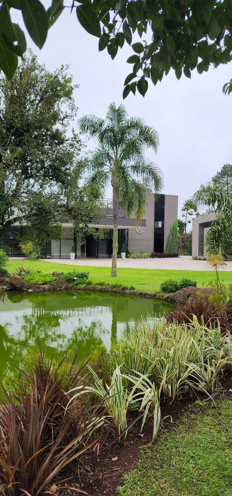 Belíssima área verde com 10.000 m2 totalmente plana, gramada e circundada por cedros e palmeiras, oferecendo opções cenográficas charmosas para cerimônias e eventos ao ar livre.