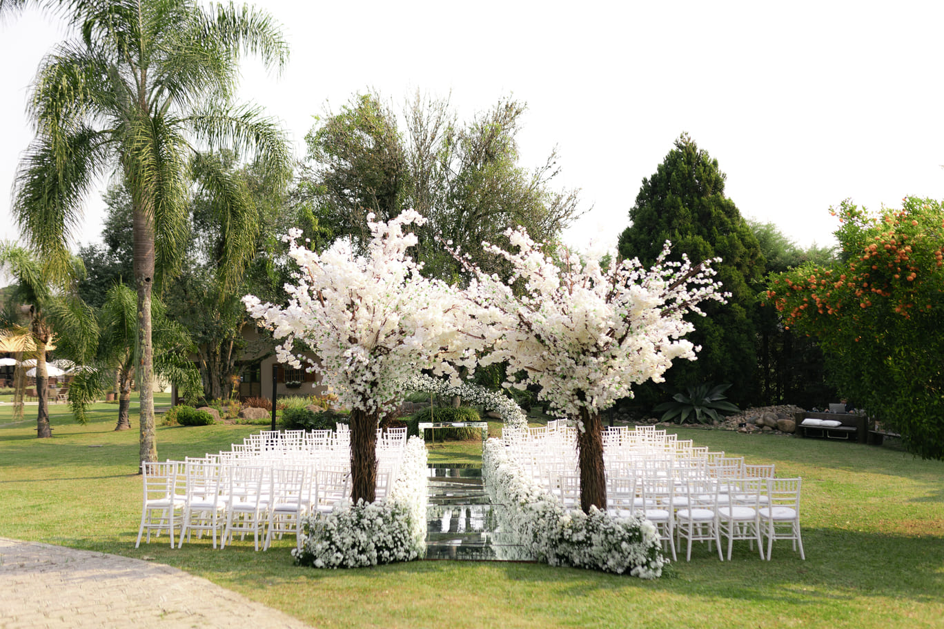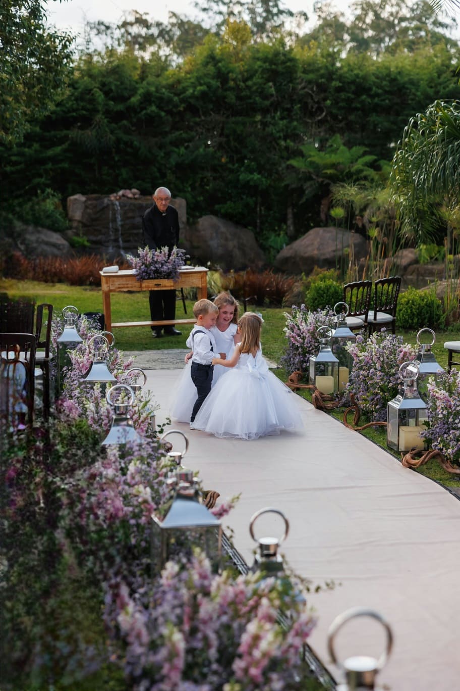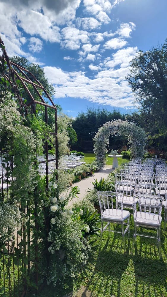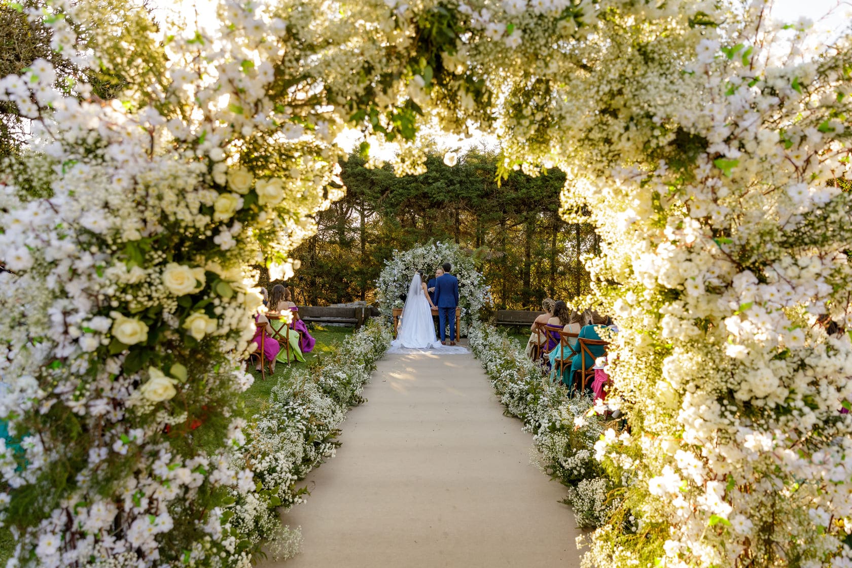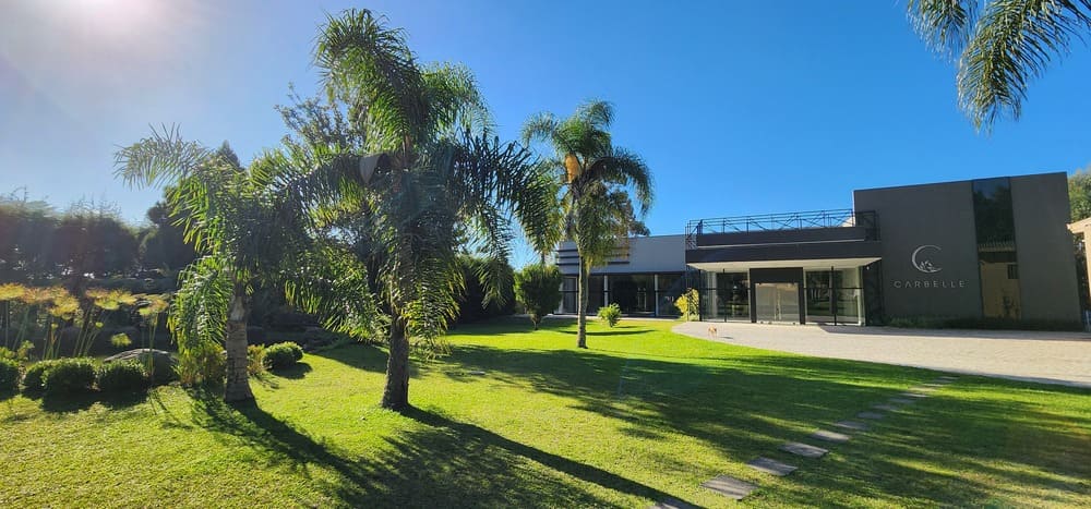 Belíssima área verde com 10.000 m2 totalmente plana, gramada e circundada por cedros e palmeiras, oferecendo opções cenográficas charmosas para cerimônias e eventos ao ar livre.